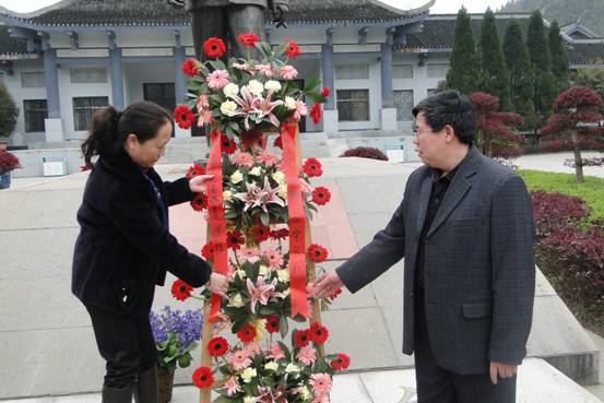公司领导向贺龙元帅献花