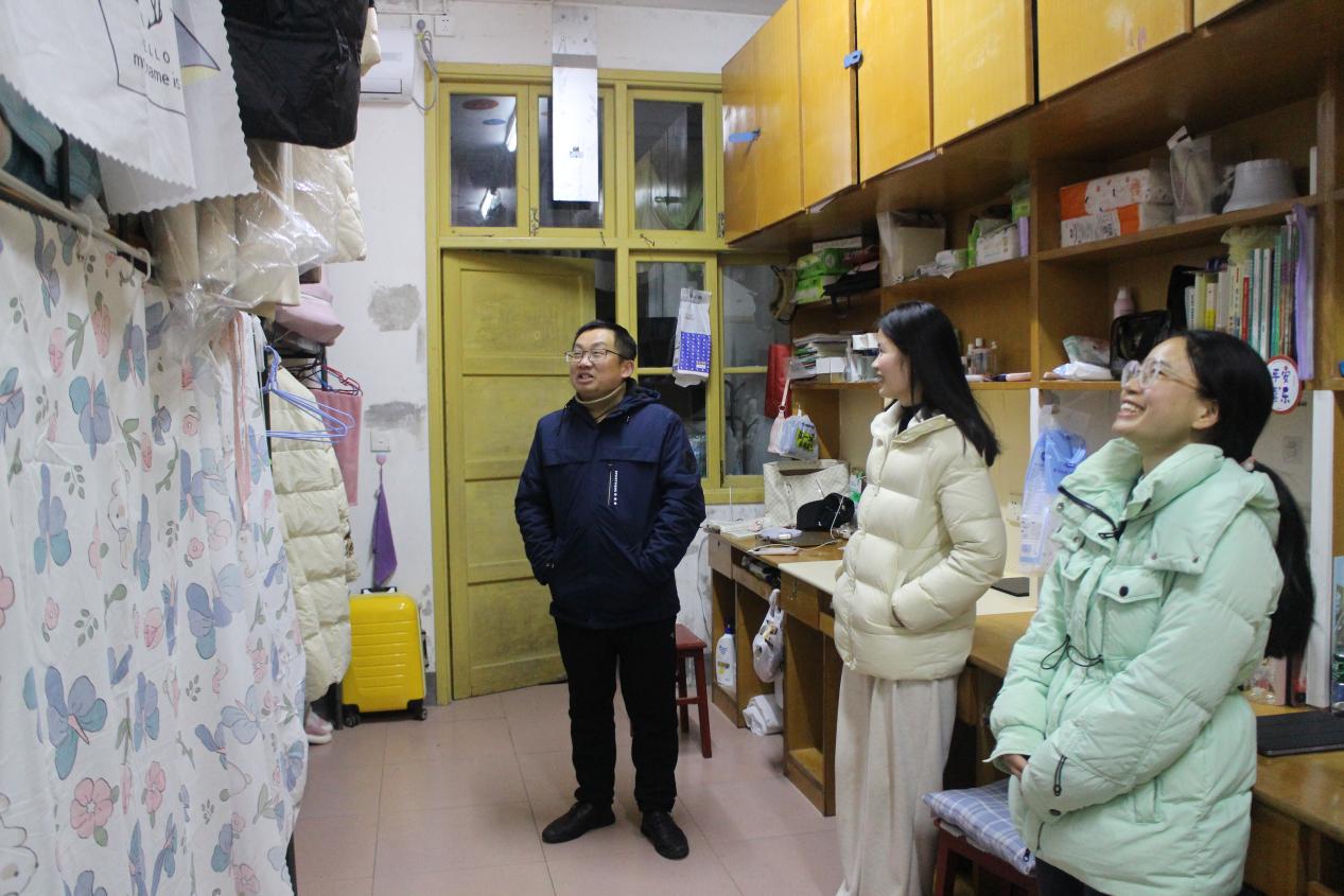 在下寝过程中,柴绪亮书记一行仔细询问了员工们的返校感受,提醒员工们增强安全用电的意识,强调防寒保暖的重要性,加强锻炼,同时嘱咐大家要融洽相处,互相帮助。此外,院领导还叮嘱同学们要调整心态,规划好新学期的学习计划,保持愉悦心情,展现马院学子积极向上的精神风貌,为自己的校园生活交上一份满意的答卷。
