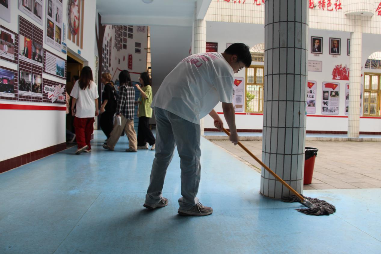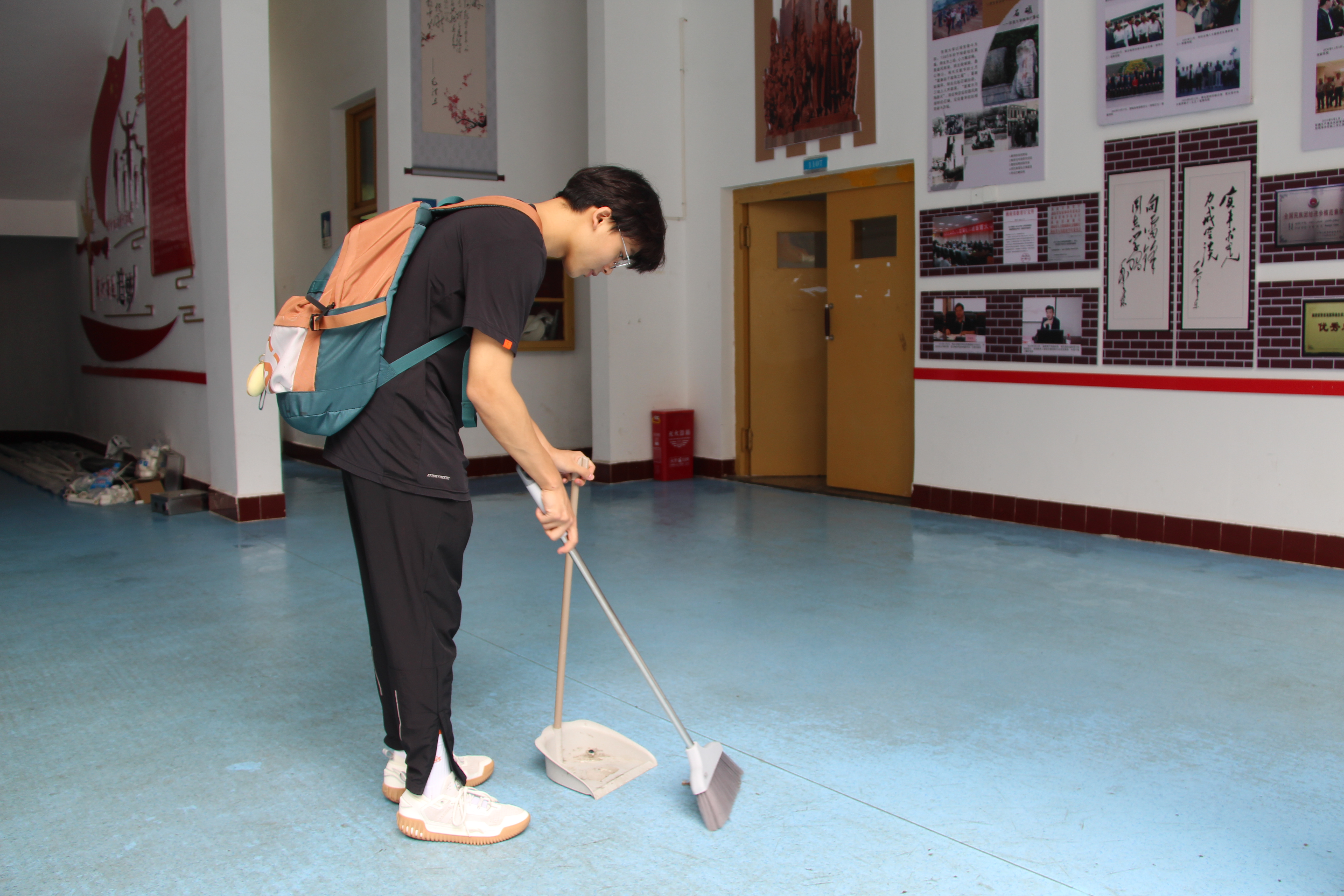 短暂休息后,在党训班班长贺周洋同学的带领下,学员们领取清洁工具,展开“清洁思政园”志愿服务活动。学员们对思政园一、二楼各区域进行打扫清洁,让思政园焕然一新。