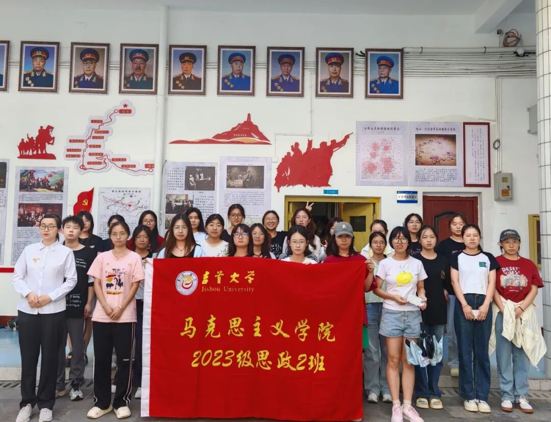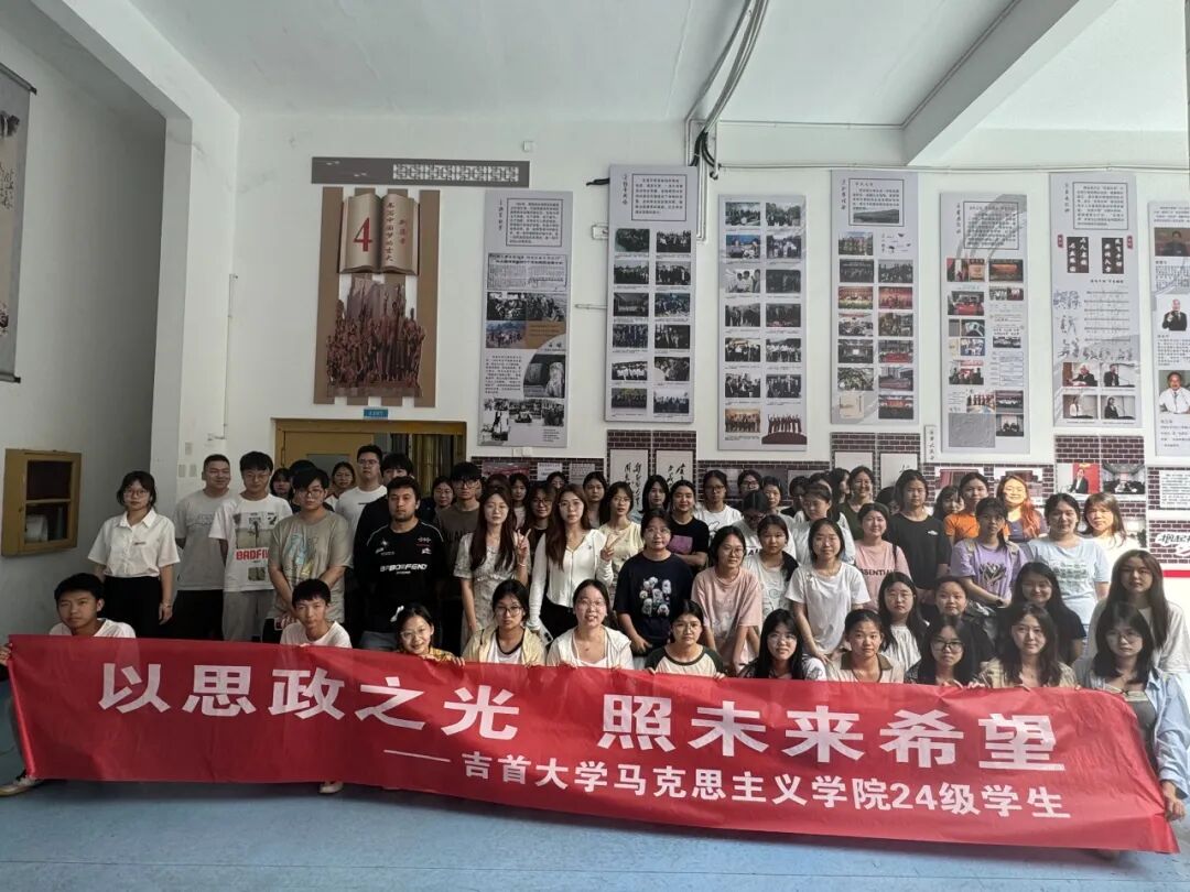 参观结束后,各班宣传委员积极组织协调全体同学与讲解员一起拍摄集体大合照。同学们簇拥在班旗周围,精神饱满,青春洋溢,将参与本次主题团日的收获与集体归属感定格在镜头之中。这一张张合影不仅是活动的记录,更是马院学子坚定信仰、凝聚力量的生动见证。