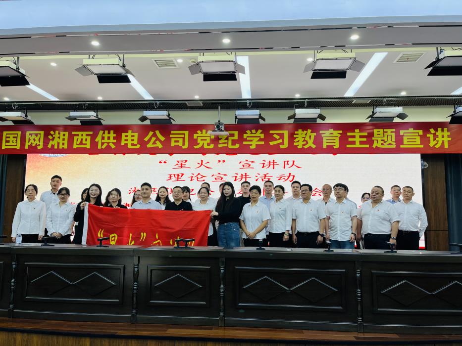 本网讯(通讯员 王丹)为深入贯彻落实党纪学习教育,推进党的创新理论融入湘西州国有企业各项工作,5月29日下午,伟德国际VICTOR1946“星火”宣讲队在国网湘西供电公司开展了理论宣讲活动。国网湘西供电公司副总经理顾海军及本部各支部书记及党员代表参活动。公司党委书记柴绪亮率领“星火”宣讲二分队的部分成员进行宣讲。活动由硕士研究生王丹主持。