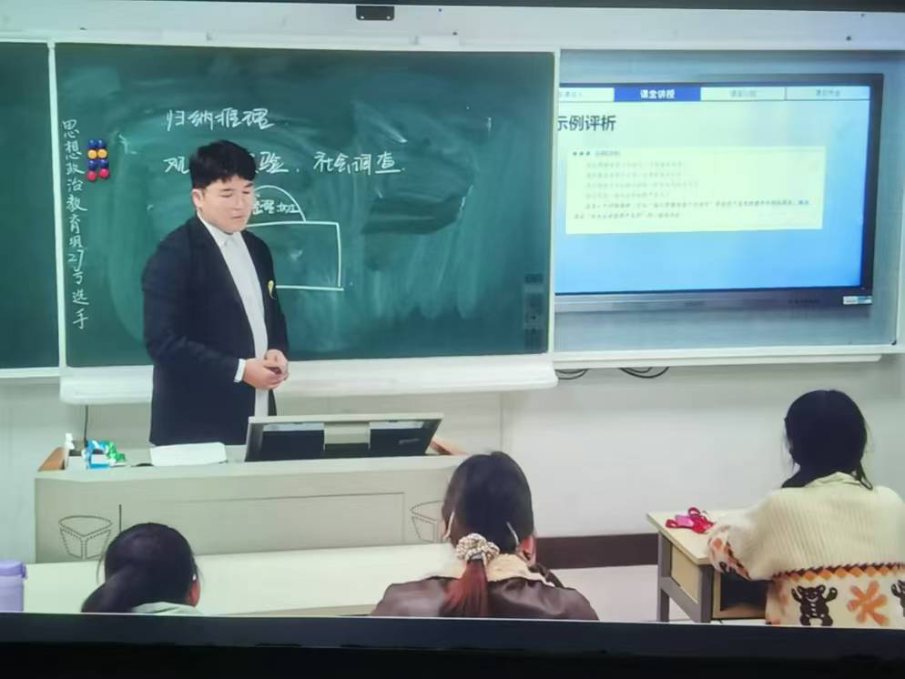 决赛前,骆煜嘉同学抽到了高中政治选择性必修内容,这是他之前准备较少的部分。然而,他迅速熟悉教材并完成教学设计和PPT。上场时,他虽然紧张,却仍然按照自己的设计完成了全程,展现出了出色的教学技能和应变能力。