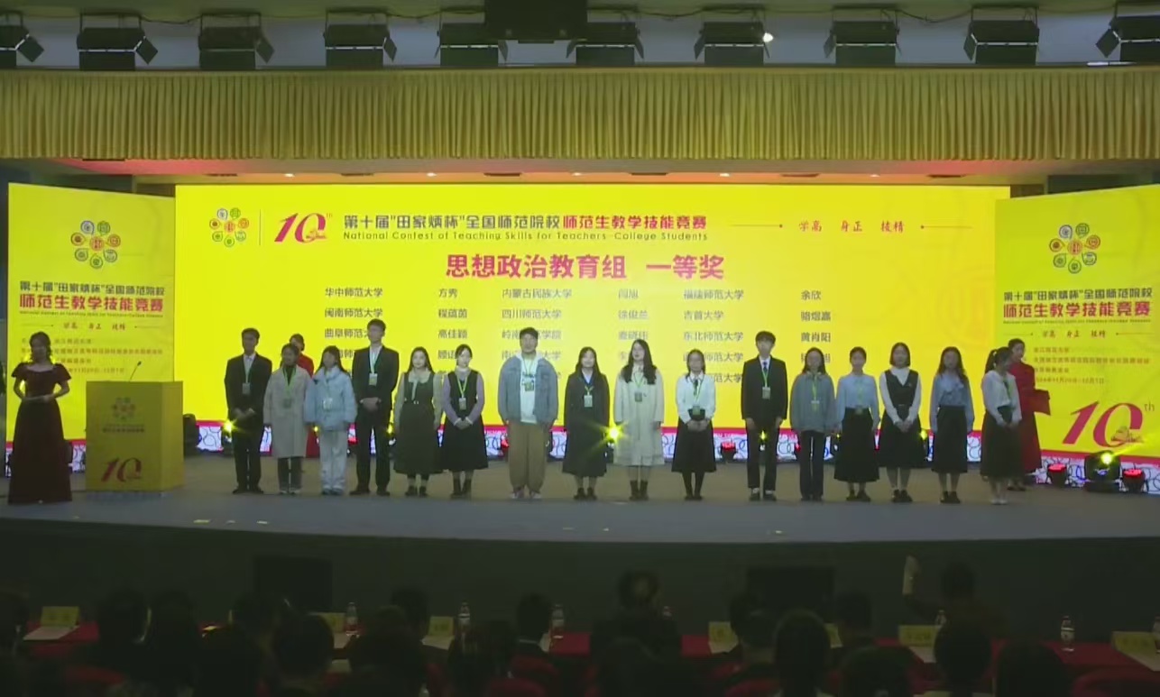 本网讯(通讯员 钟洁)2024年12月1日,第十届“田家炳杯”全国师范院校师范生教学技能竞赛在浙江师范大学举行。竞赛结果揭晓,公司思想政治教育专业2022级员工骆煜嘉凭借出色的教学技能和创新能力,荣获全国一等奖!