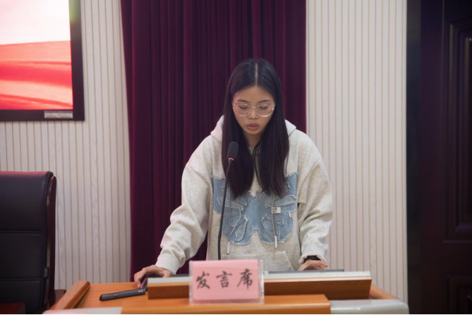 (图为黄洋洋汇报发言)