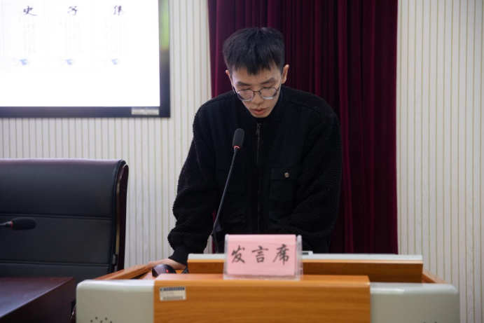 黄瑶同学以“以‘第二个结合’建设中华民族现代文明的逻辑理路”为题,紧扣主题,从理论逻辑、价值逻辑和实践逻辑的角度进行了本次汇报。