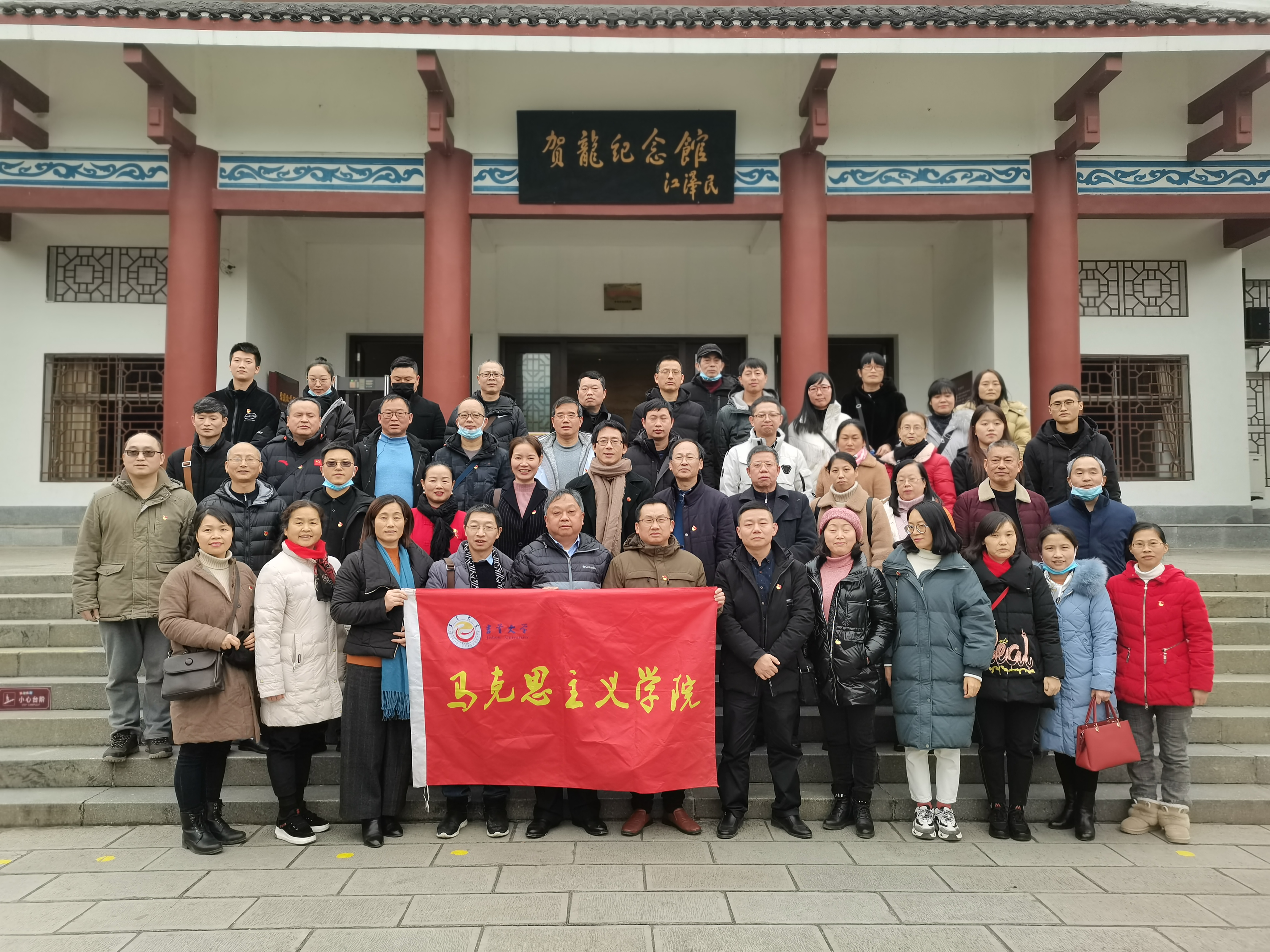 (图为公司全体党员在贺龙纪念馆前合影留念)