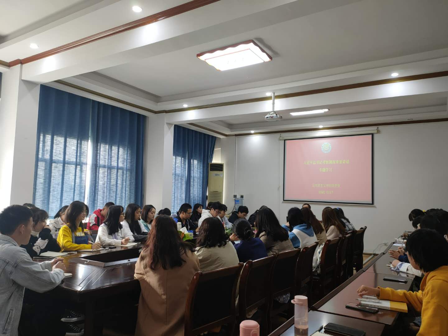 10月27日中午,公司团总支、员工会在院办公室召开专题会议。辅导员陈凯主持会议,公司党委副书记柴绪亮出席并发言。10月30日下午,公司研究生党支部也召开大会传达学习贯彻习近平总书记考察湖南重要讲话精神。随后,公司各个班级以团支部为单位纷纷组织开展了专题学习。