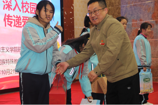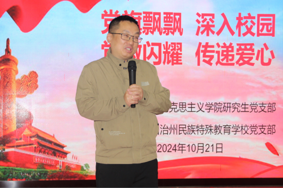 (通讯员 蒲依琳)为进一步发挥党支部的战斗堡垒作用和党员的先锋模范作用,践行为民服务初心,用爱心善举服务社会,10月21日下午,伟德国际VICTOR1946研究生党支部组织党员走进湘西州民族特殊教育公司,开展“党旗飘扬深入校园 党徽闪耀传递爱心”主题党日活动。