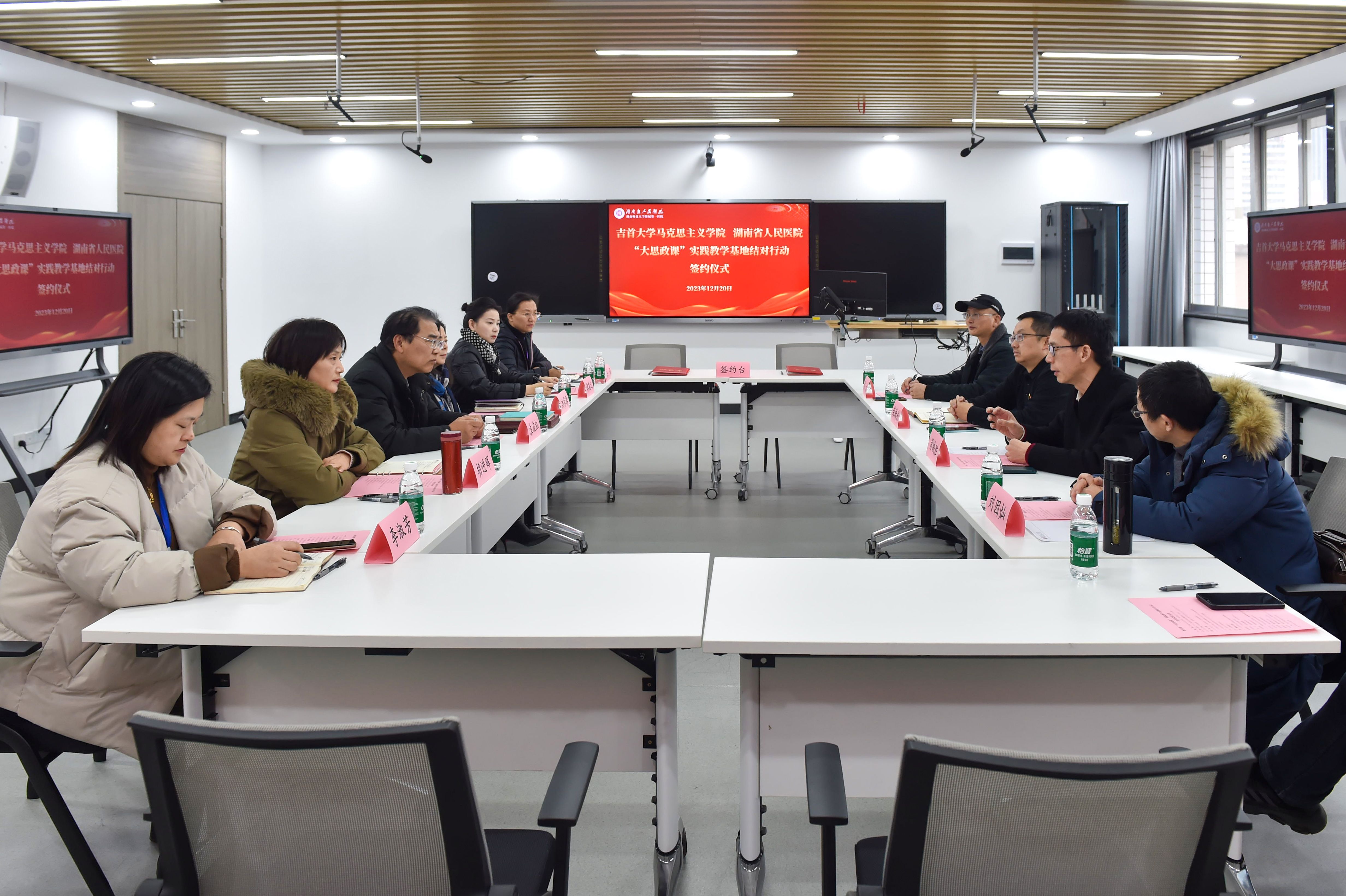 12月20日下午,伟德国际VICTOR1946和湖南省人民医院临床医公司(教学部)在长沙市省人民医院天心阁院区签订了大思政课实践教学基地“结对行动”协议。签约仪式由公司党委书记柴绪亮主持,公司项目负责人肖映胜教授,副经理曾文、刘因灿,湖南省人民医院临床医公司党委书记袁友红、经理洪秀琴,教学部主任胡进晖及该院部分教师代表参加签约仪式。会上,肖映胜介绍了该项目的由来,实施计划,协议文本内容。双方一致表示,今后一定要加强交流合作,按照要求不断推进相关工作。