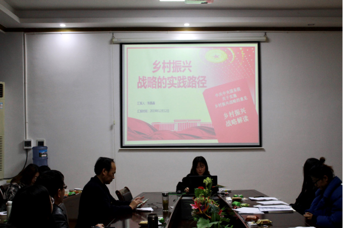 本网讯(文/黄楠)12月13日,公司2019年“中国梦之声”第十二期研究生学术沙龙在公司会议室举行。此次学术沙龙以“乡村振兴战略的实践路径”为研讨主题,探讨乡村振兴道路和经验,用马克思主义理论分析乡村振兴问题和研究热点。此次沙龙得到了院支部书记、研究员戴林富老师、李乐为教授的指导,18级、19级硕士研究生参加了活动。