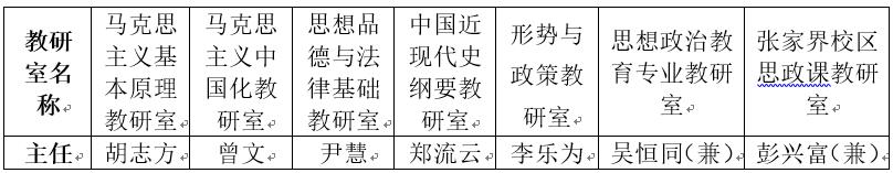 随着公司事业的发展、教师队伍的增长,教育部学位办评估精神,教育部印发《新时代高校思政课教学工作基本要求》关于“思想政治理论课教学应按课程分别设置教研室”精神,公司对于教研室设置进行了调整,决定设立:马克思主义基本原理、形势与政策、马克思主义中国化、近现代史纲要、思想品德与法律基础教研室、思想政治教育教研室、张家界校区思想政治理论课共计七个教研室,并对于教研室主任进行换届。