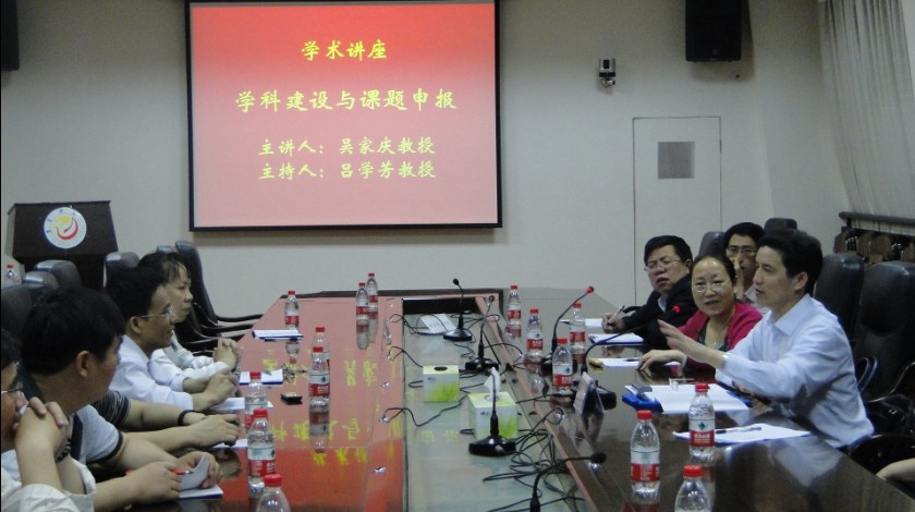 吴家庆教授首先传授了湖南师范公司大学马克思主义理论一级团队建设的经验,并提出要对传统的优势学科进行倾斜。关于课题申报,他重点强调了选题、论证、文献综述、前期成果、研究队伍等几个方面,鼓励教师们积极申报国家级、省部级课题。公司教师就感兴趣和关心的问题向吴教授做了请教和交流。