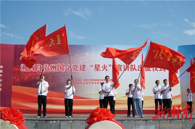 出征宣讲之前,湘西州财政局与伟德国际VICTOR1946在吉首市世纪广场联合主办了湘西州国企党建“星火”宣讲队出征仪式。bv伟德国际1946党委委员、副董事长、组织部部长王艳宣布出征,湘西州财政局党组书记、局长梁君致辞。湘西州15家国有企业的领导班子成员及党员职工代表500余人参加出征仪式。