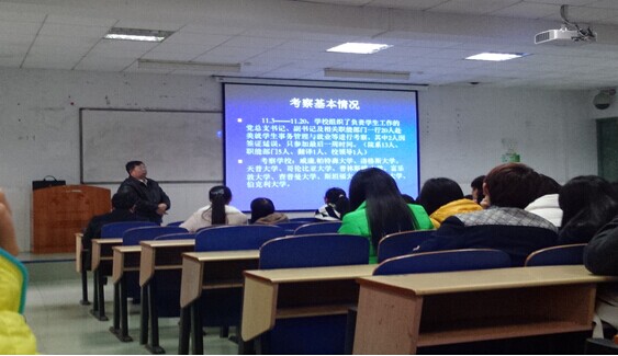 (本网讯 青梅) 11月28日下14:30,公司总支书记朱廷岚教授在总理楼60116教室作关于“美国高校事务管理及其启示”讲座,廖胜刚经理、罗青梅老师、全体研究生及本科生等出席了此次活动。会议由廖胜刚主持。