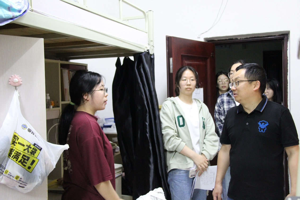 在下寝过程中,柴绪亮书记一行查看寝室饮水机等设备,与广大同学亲切交谈,提醒同学们提高安全防范意识,确保人身财产安全,告诫同学们注意五一假期的旅途安全,避免发生安全事故,同时嘱咐同学们要融洽相处,互相帮助,共同营造良好的学习和生活环境。