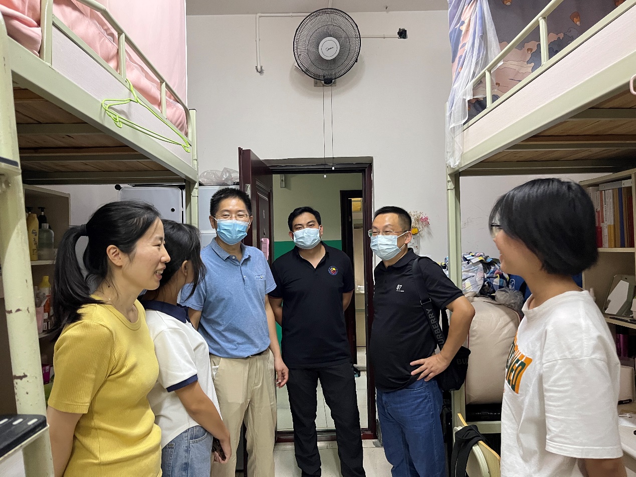“宿舍的人都来齐了吗?”“路上疫情防控注意细节了吗?”“吃晚饭了吗?”……一些日常的问题让同学们感受到了到校后的第一份温暖。各位老师下寝慰问当中,都与同学们面对面进行了亲切交流,此外还对同学们的暑假学习情况也进行一些了解,鼓励不同年级的员工根据自身特点,围绕考研、四六级、教育实习等等制定规划,在新学期展现全新的面貌。柴绪亮书记还特别强调同学们要注意疫情防控问题,交代大家到了公司,按照要求上好网课、参加核酸检测,做好防疫工作,确保自身安全。