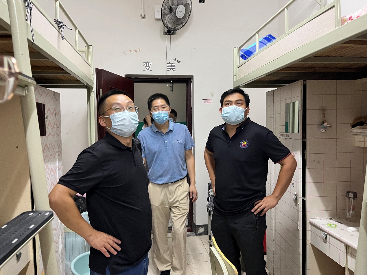 本网讯(通讯员 朱思瑾)为深入了解公司员工的宿舍生活和开学到校情况,9月4日晚上19:00,公司党委书记柴绪亮、新到任的党委副书记叶伏秋、辅导员袁梓翔以及19、20、21级各班班主任集体下寝室看望假期归来的员工。