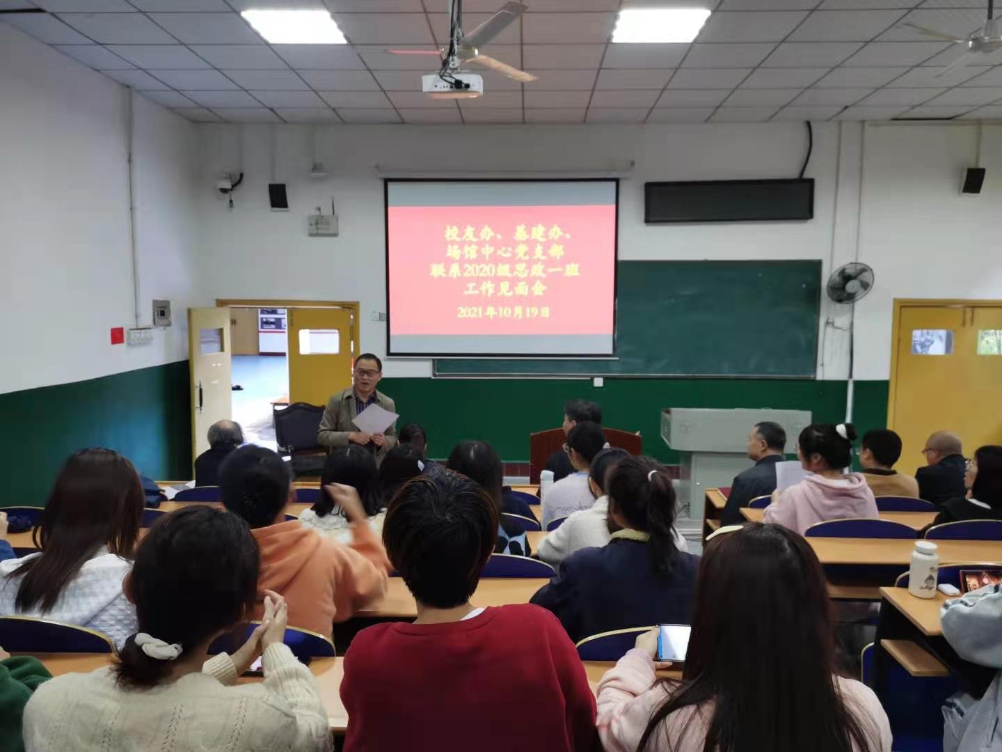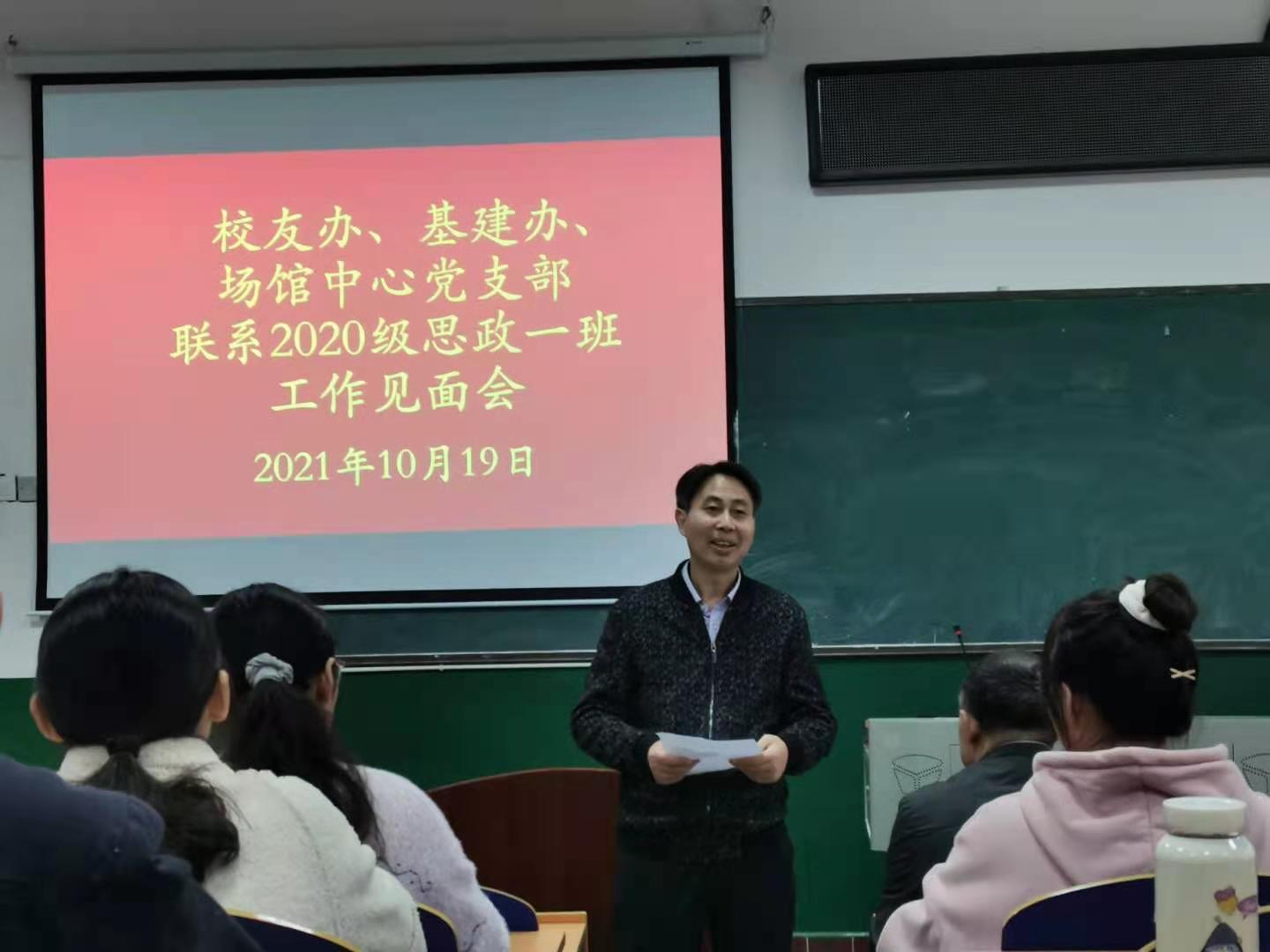 本网讯 (通讯员 文名欣) 为贯彻落实公司党史学习教育“六百工程”之一“100个教工支部联系100个员工班级”有关安排,进一步发挥公司职能部门联系教学公司员工班级的优良传统,2021年10月19日下午,员工办、基建办、场馆中心联合党支部联系伟德国际VICTOR19462020级思政1班工作见面会在思政园1105教室召开。本次会议由该公司思政1班班主任张维红老师主持,员工办主任李荣光、基建办主任邹升军、文化场馆中心主任张华及该联合党支部部分党员,公司党委书记柴绪亮及2020级思政1班全体同学参加。