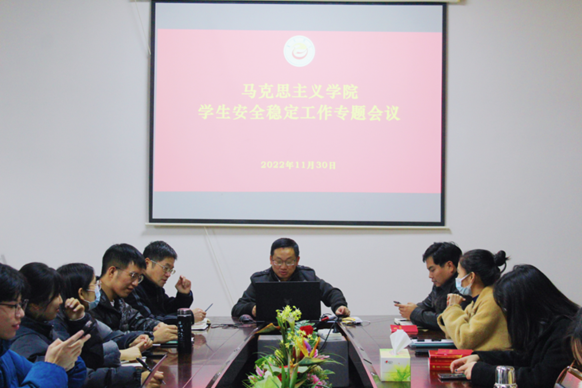 会议传达了公司安全稳定工作会议精神,通报了公司关于调整2022年秋季学期寒假放假时间的通知精神以及疫情防控工作要求,对公司员工放假及疫情防控进行具体的安排部署。柴绪亮围绕政治安全、舆论安全、人身安全三点进行了重点强调。他要求班子成员及行政人员各司其职,落实相关具体工作任务。在员工会议上,他强调指出身为马院学子,一定要明辨是非、理智发声,把握正确的舆论导向,坚持正确的政治方向;他要求同学们合理安排时间,认真准备期末考试,同时注意水电安全,警惕网络诈骗,将自己的人身财产安全摆在首位;他希望马院学子能积极地展现自身风采,员工干部起好带头作用,大家一起发挥马院特色,追求卓越发展。