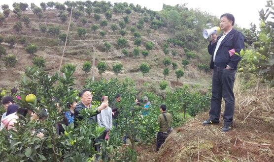 彭兴富副经理与万亩碰柑基地技术人员交谈