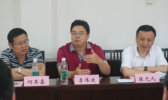 本网讯(文/娟萍)7月18日下午,怀化公司伟德国际VICTOR1946经理李伟迪教授、党总支书记何其鑫、思想政治教育重点建设学科带头人陈元九教授率公司领导班子及教学、科研骨干一行来公司进行考察交流。公司经理廖胜刚教授、书记朱廷岚教授、副经理彭兴富副教授和肖映胜教授、工会主席李乐为教授、经理助理孙忠良博士以及思品教研室主任廖金香博士、概论教研室主任郑流云博士、教育学心理学教研室主任黄吉武副教授、办公室主任吕娟萍老师等参加了交流座谈会。会议由廖胜刚主持。