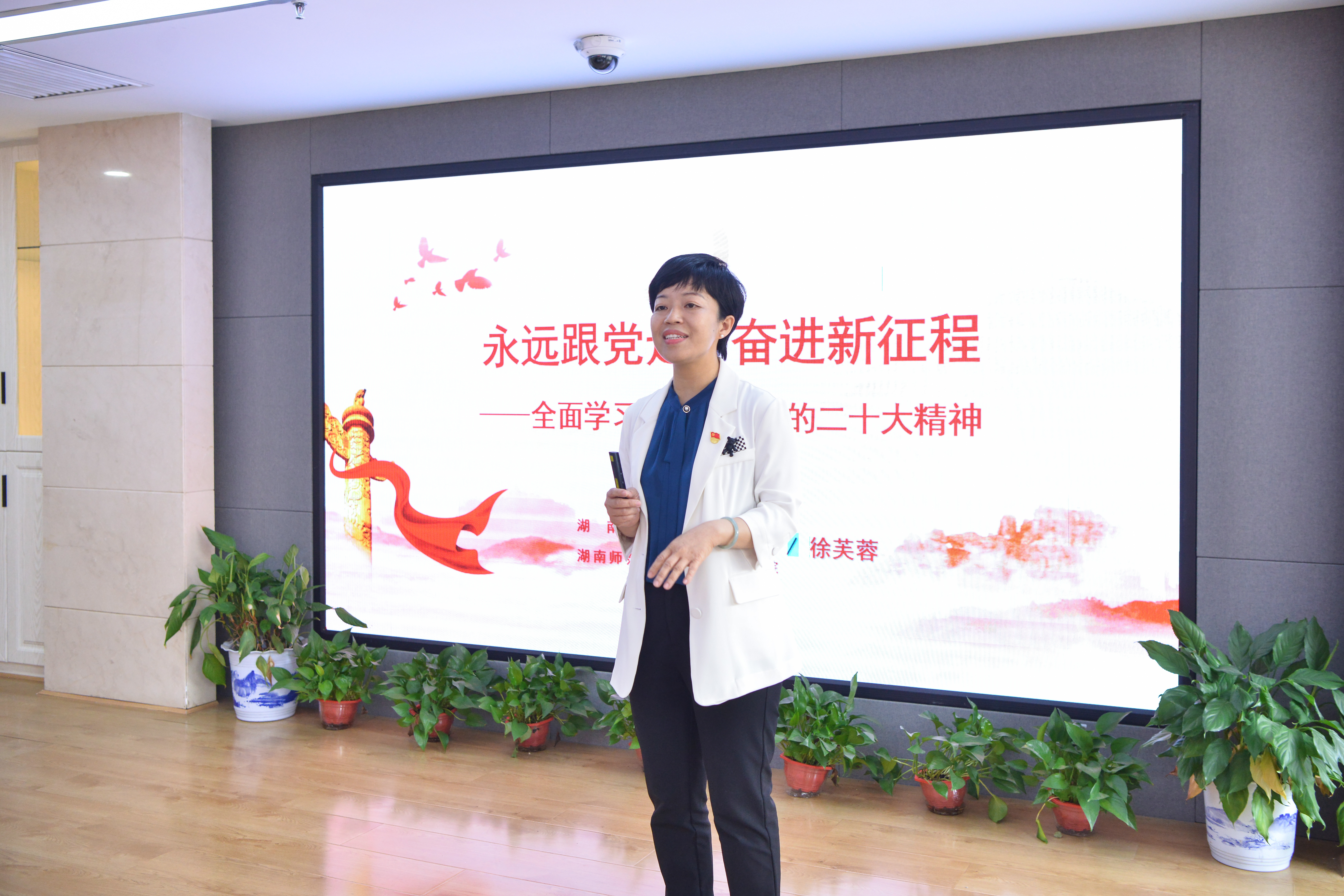 活动现场,湖南省人民医院护士代表徐芙蓉、医生代表李建民向与会师生分享抗疫故事。党的二十大代表、省人民医院ICU护士长徐芙蓉以《永远跟党走,奋进新征程——全面贯彻落实党的二十大精神》为主题,分享了自己在坚守湖北黄冈抗击新冠肺炎疫情一线和远赴非洲两个国家援助抗疫的点点滴滴,并结合参加党的二十大的亲身经历分享了自己的心得体会,号召与会师生埋头苦干、奋勇前进。省人民医院呼吸科主任医师、湖南省优秀党员李建民以《白衣赤心:为生命而战》为主题,介绍了自己从奔赴黄冈,再到常德、郴州、怀化等多地参与抗疫的经历,表示是党员的党性、医生的天职让自己义无反顾地踏上抗疫征程。