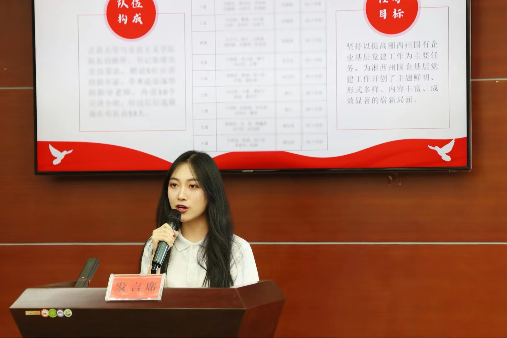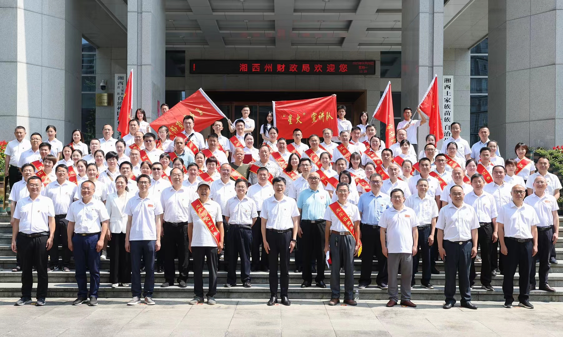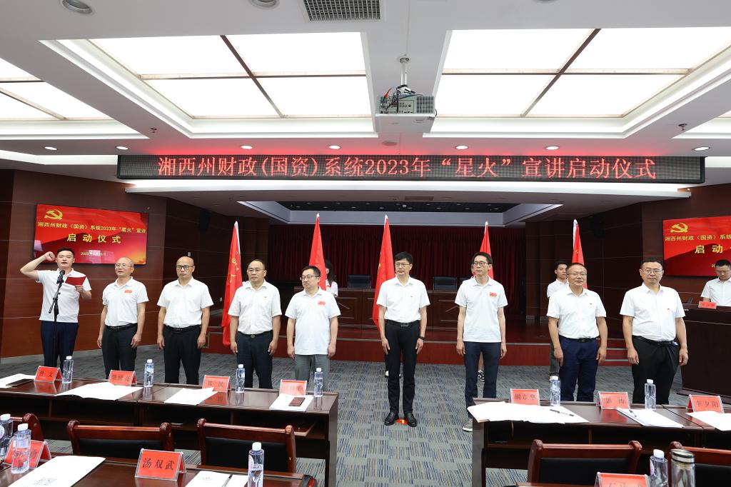 6月27日,经理肖映胜、公司党委书记柴绪亮、副经理曾文率领部分研究生参加了州财政局举办的2023至2024年度湘西州国有企业星火宣讲活动启动仪式。星火宣讲队成员朱永炀汇报了前期星火宣讲所取得的骄人成绩,田野代表星火宣讲队成员宣誓。湘西州财政局领导为星火宣讲队授旗。