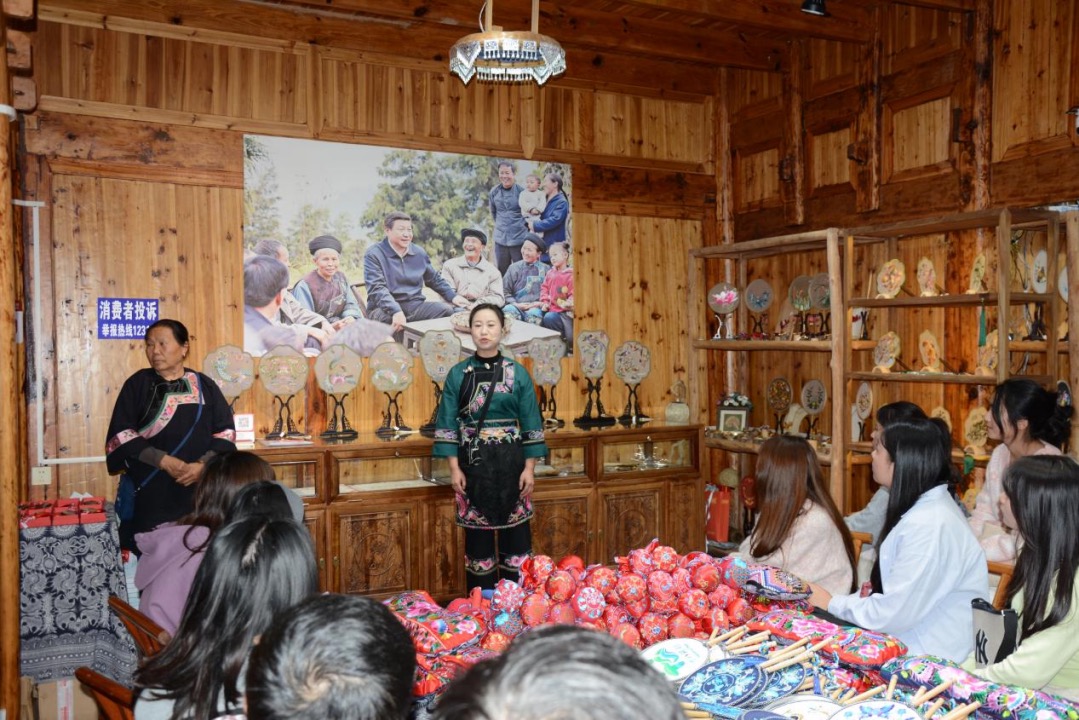 在十八洞村苗绣基地,马院师生通过参观苗绣展品,聆听微党课,深入体验苗族传统文化的魅力,认识到苗绣不仅是中国非物质文化遗产的重要组成部分,也是十八洞村文化自信的重要体现。