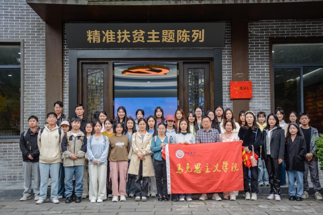 (图为马院师生在精准扶贫主题陈列馆前合影)