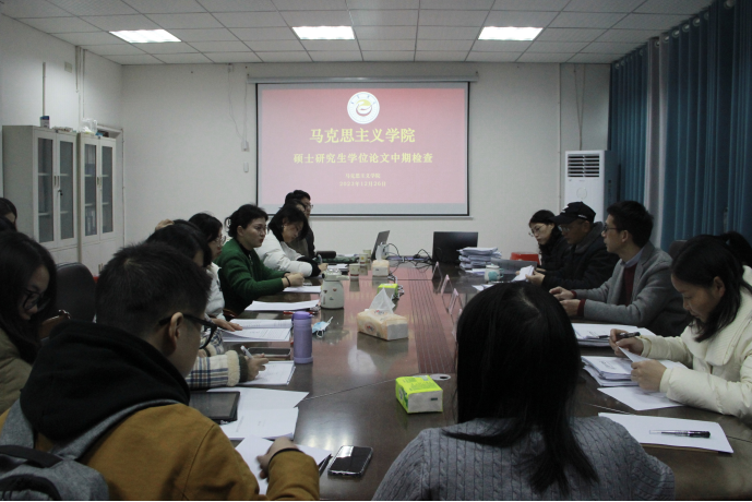 (图为一教五楼会议室中期检查答辩现场)