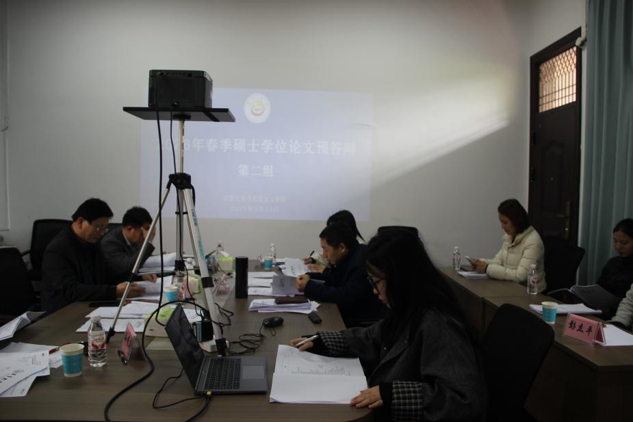 (图为鹤鸣楼二楼会议室预答辩现场)