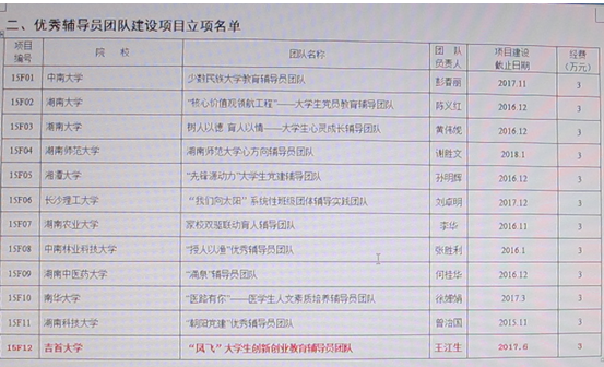 据悉,2015年老员工思想道德素质提升工程省级项目,经各校推荐,专家评选,省委教育工委、省教育厅审定,确定2015年度湖南省普通高校老员工思想政治教育示范建设项目立项项目15个,湖南省普通高校优秀辅导员团队立项建设项目50个, 湖南省普通高校特色成长辅导室立项建设项目98个,湖南省老员工德育实践项目246个。其中公司游俊书记主持《“立人”素质教育的实践推广》老员工思想政治教育示范建设项目(15SF06)、王江生主持的《bv伟德国际1946 “凤飞”老员工创新创业教育辅导员团队》优秀辅导员团队建设项目(15F12)、王元主持的《bv伟德国际1946医公司“仁心”特色成长辅导室》建设项目(15C21)、耿梓涵,谢正发主持的《隐形的翅膀――折翼天使关爱帮扶行动》等4个老员工德育实践项目获得立项。