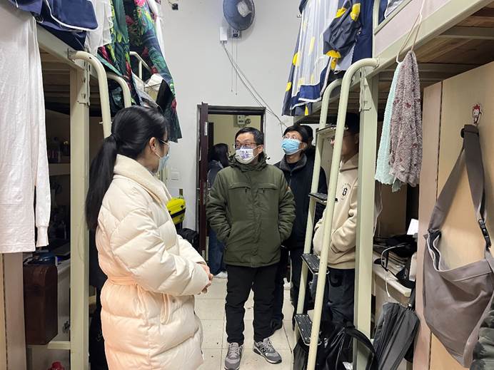 “冬天来了,千万要注意用电安全,各种违章电器一定不能使用。”在下寝过程中,公司老师与员工亲切交流,并一再叮嘱同学们不使用大功率电器,提高安全用电意识。同时,公司领导一行还深入员工宿舍,询问了同学们四六级考试、考研的复习迎考状态,勉励员工上好网课、静心备考,按照自愿原则合理安排出行,充分体现了公司领导和老师对同学们的关心和关爱。