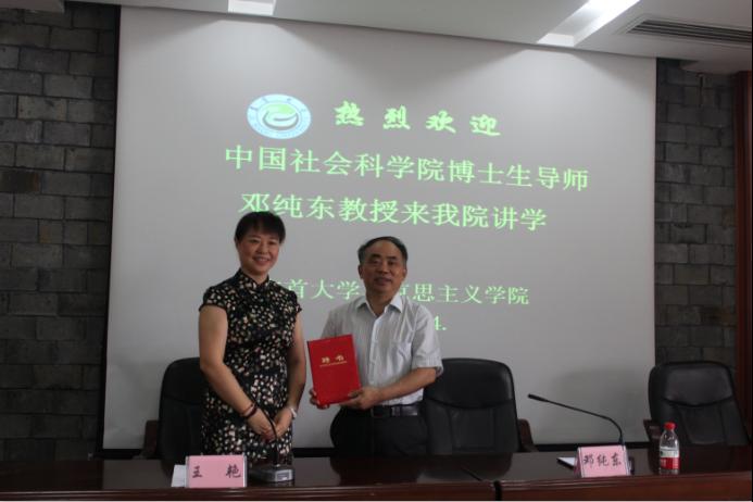 王艳部长代表公司对邓纯东研究员的到来表示热烈的欢迎,向与会人员介绍了邓纯东研究员的学术背景,并代表公司为邓纯东研究员颁发了特聘教授聘书。