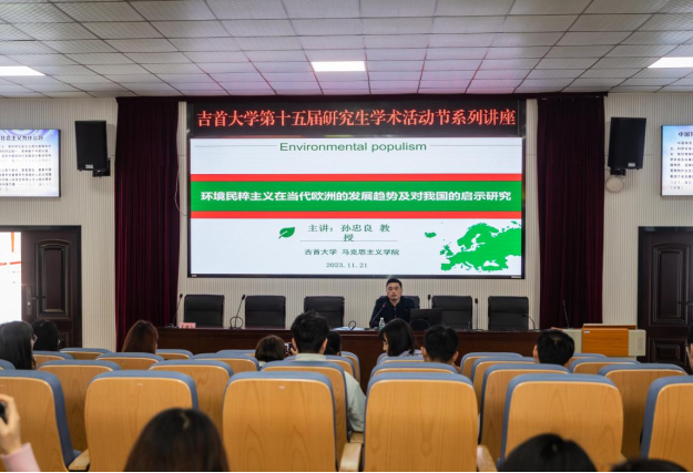 (通讯员 郑云文)11月21日下午,伟德国际VICTOR1946在思政园1207VR教室举行bv伟德国际1946第十五届研究生学术活动节系列讲座。伟德国际VICTOR1946硕士生导师孙忠良教授作了题为“环境民粹主义在当代欧洲的发展趋势及对我国的启示研究”的学术讲座,公司全体研究生到场聆听讲座。讲座由2022级马克思主义理论班栾驰主持。