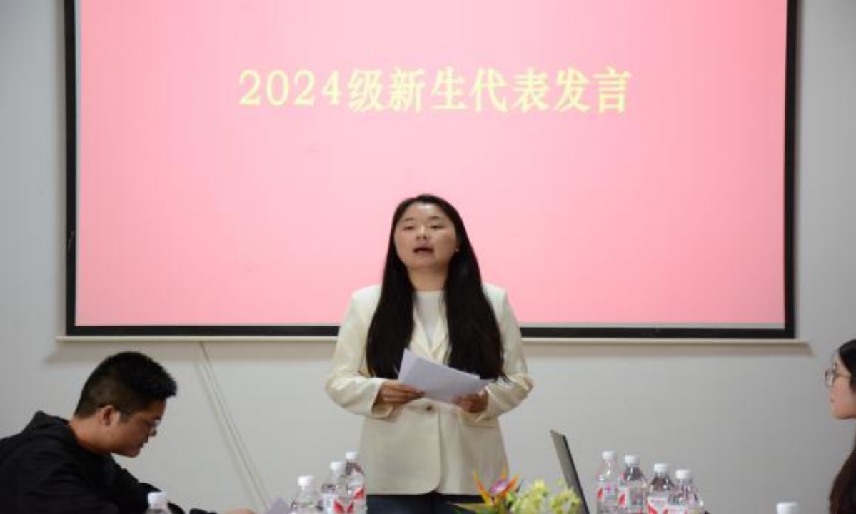 2022级马理论专业员工代表唐世铼、2024级新生代表黄鑫,分别进行了热情洋溢的发言。随后所有的2024级研究生新生进行了一分钟的自我介绍,并庄严进行入院宣誓仪式。