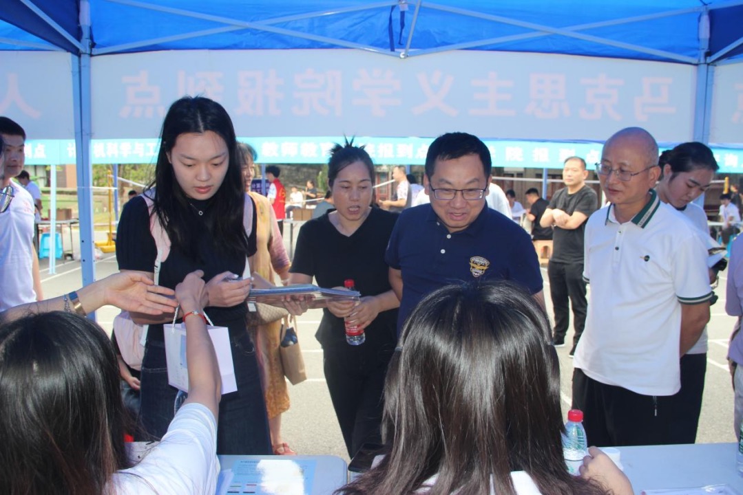 上午10 时许,公司领导也来到迎新现场,了解迎新工作的开展情况,关心慰问现场的师生志愿者,亲切问候报到的新生。