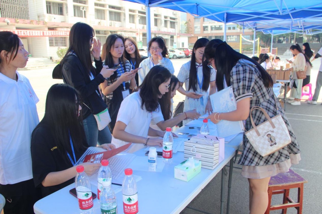早晨7点,迎新志愿者们就已就位,在简短的会议后,大家分工明确,精心布置,以饱满的热情和真切的关怀欢迎2024届研究生新生的到来。