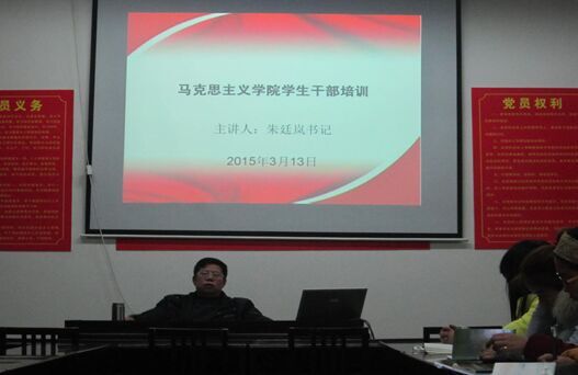 (本网讯 刘鹦)3月13日19:00,公司党总支书记朱廷岚教授在院会议室对公司全体员工会干部进行了培训。罗青梅老师、员工会前任主席吴吉圣及全体员工干部参与了此次培训。培训会议由罗青梅老师主持。