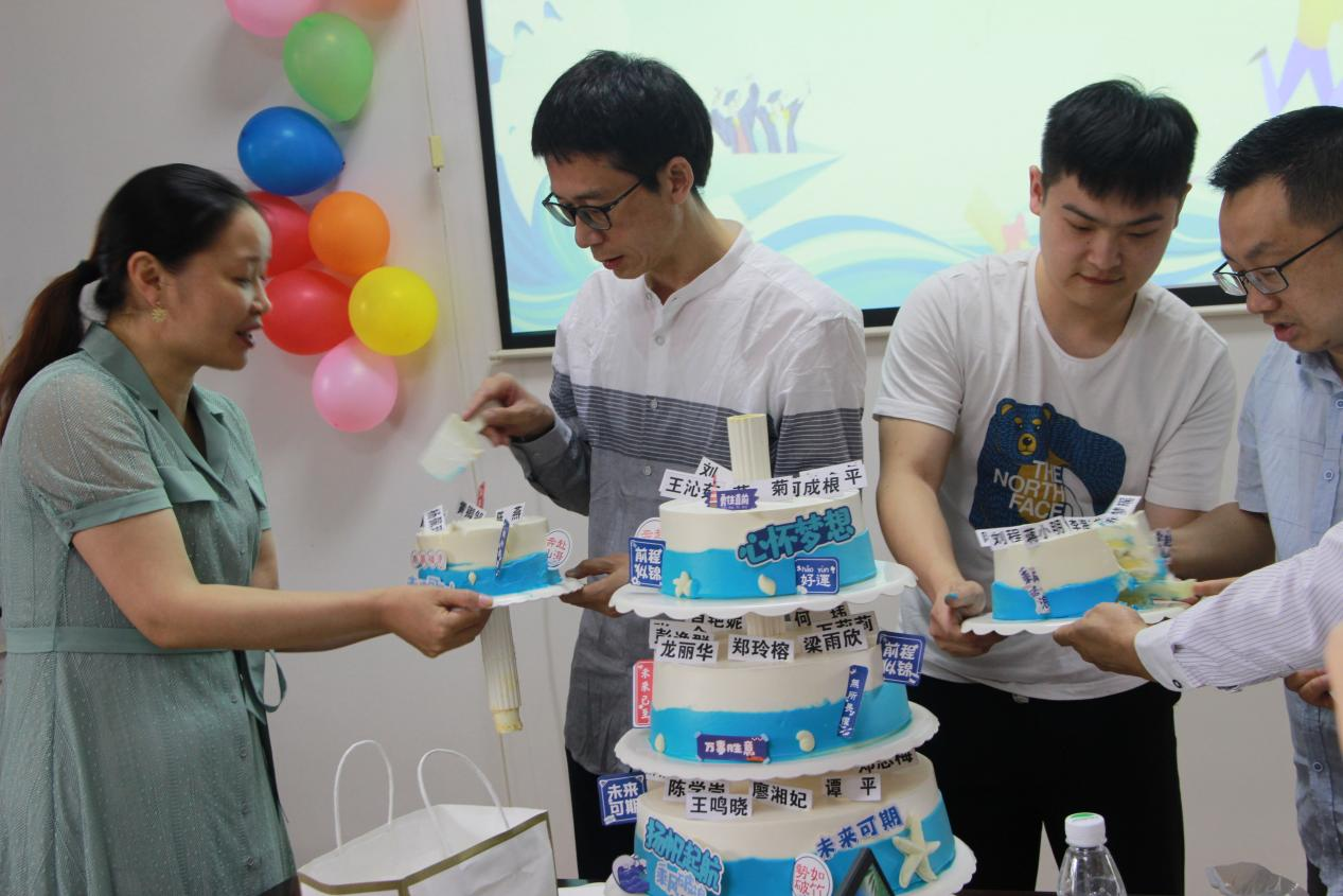 座谈会进入共切毕业蛋糕这一温馨环节,公司领导老师为每一位分发了贴上毕业生名字的蛋糕,在场师生分享这一甜甜蜜蜜的喜悦。