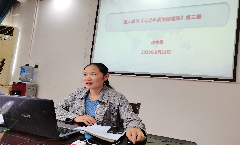 9月21日下午,公司党委理论学习中心组举行《习近平谈治国理政》(第三卷)集中学习。公司全体在岗教职工分两个校区参加学习,吉首校区由公司教授、湘西州“习近平新时代中国特色社会主义思想”宣讲团骨干成员廖金香博士作专题发言。