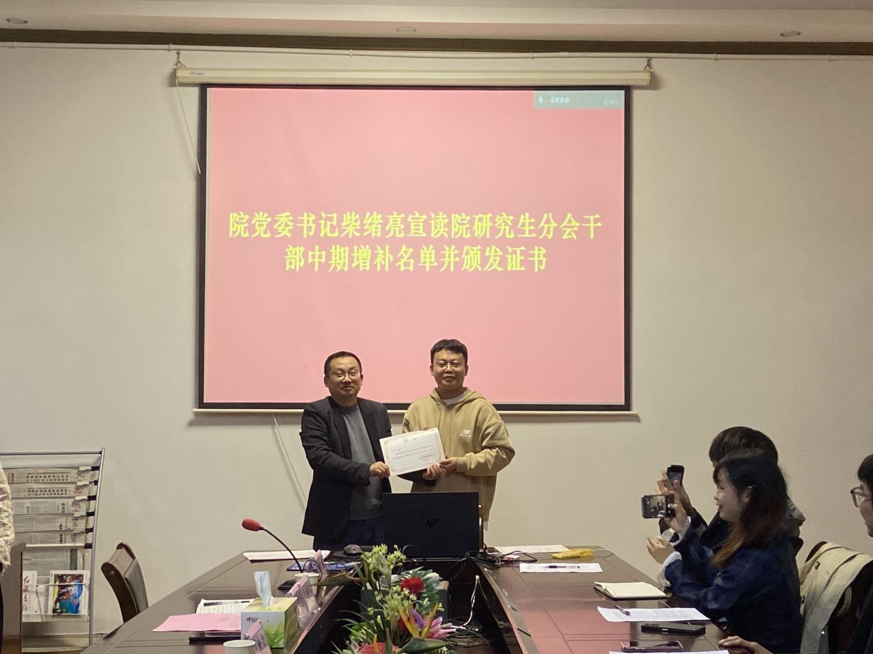随后各部长分别对所在部门过去一年的工作进行了总结与反思。柴绪亮宣布了研会干部中期增补名单,并对优秀干部与三好员工获奖者进行了表彰。