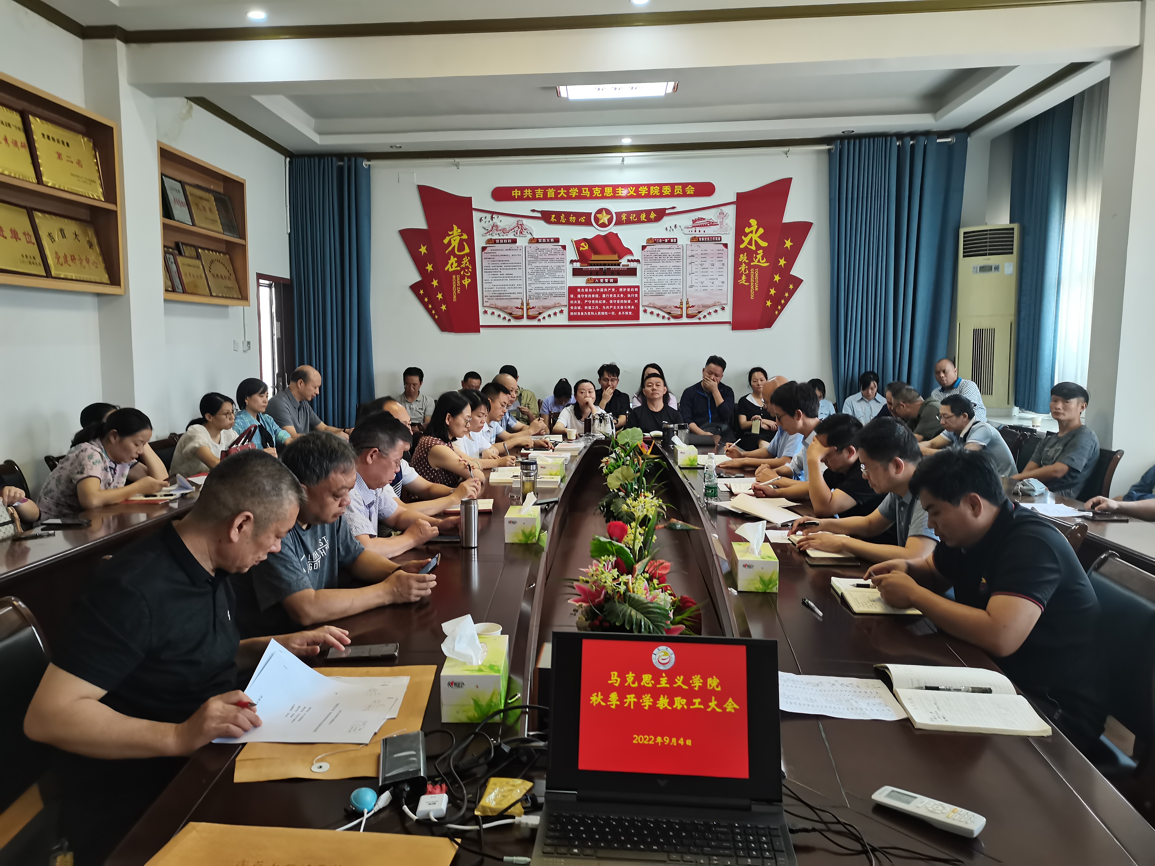 9月4日上午,公司在院会议室召开秋季学期开学工作会议,院班子成员和吉首校区教师以参加会议。公司党委书记柴绪亮主持会议,会议首先介绍了其他公司调整过来的部分教师及今年新进的硕士、博士教师代表。经理肖映胜总结了公司上半年特别是暑期做的主要工作及取得的成绩,布置了今年下半年的主要工作,副经理曾文传达了公司中层干部会议精神,安排了开学的主要教学工作。会议要求全院上下进一步提高思想认识,进一步凝心聚力,进一步干事创业,努力推进公司新的更高的发展。