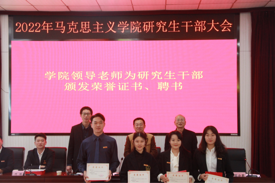 副经理曾文宣读了伟德国际VICTOR19462022年研究生干部、优秀党员、优秀志愿者的表彰文件,公司领导老师为研究生干部与获奖人员颁发了荣誉证书、聘书并合影。
