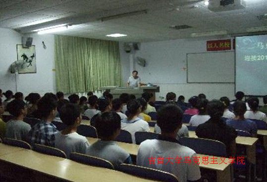 思想政治教育专业本科2013级新生在入学教育会议上认真听讲