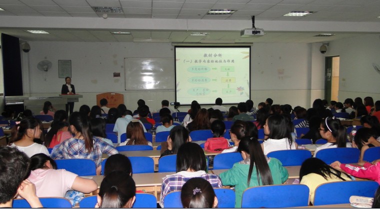 5月29日下午,伟德国际VICTOR1946在沙子坳校区总理楼60215教室举办了首届师范生教学技能大赛。本次比赛的目的是为了锻炼公司思想政治教育专业师范生的教学能力,提高其综合素质。担任此次大赛的评委的有公司教学督导丁畅松教授和石维海副教授、公司经理吕学芳教授、党总支书记朱廷岚教授、副经理廖胜刚教授以及其他老师。