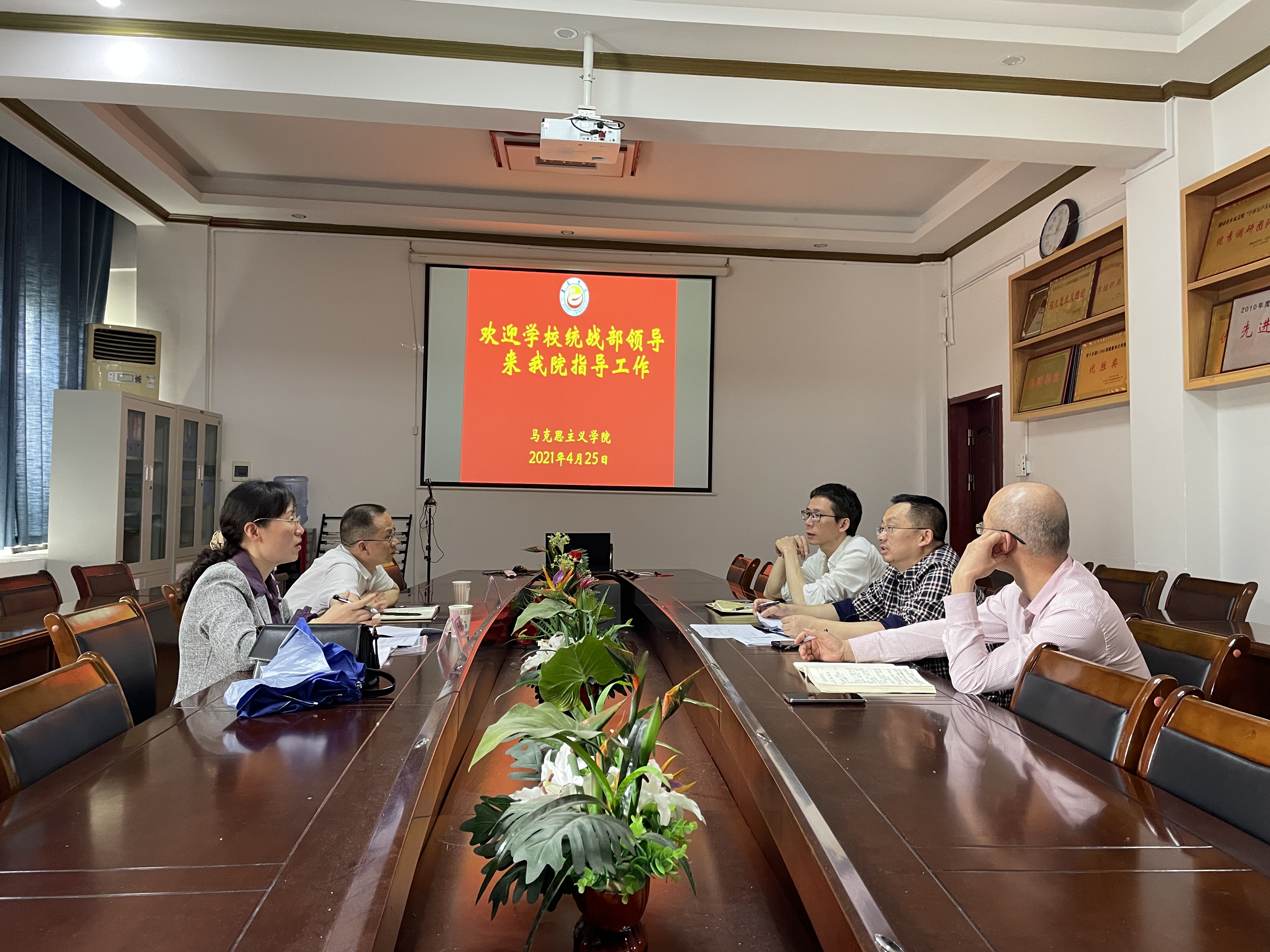 4月25日上午,公司党委统战部常务副部长石红梅、副部长吴亚峻来公司专题调研统战工作开展情况。公司党政班子成员柴绪亮、肖映胜、曾文参加会议。公司党委书记柴绪亮代表公司汇报了统战理论学习、联系党外人士、民族宗教工作等情况。统战部两位领导对公司统战表示一致肯定,并就加强理论研究、打造工作品牌提出了意见建议。据悉,统战部此次调研是为了贯彻落实省委统战工作“四明白四清楚”的工作要求而具体展开,将走访两个校区各个教学公司。