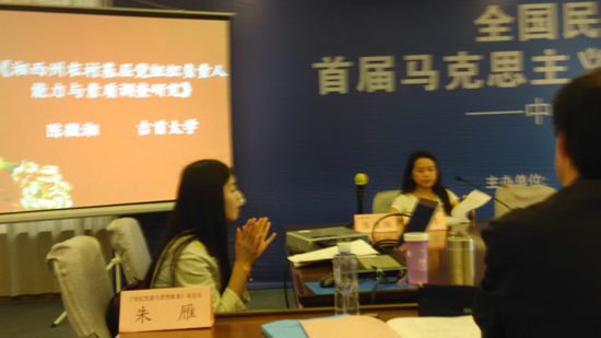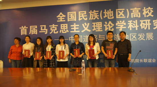本网讯(意如)4月25日,公司经理廖胜刚教授、公司党总支书记朱廷岚教授带领本院2014级研究生陈微湘、陈意如一行四人参加了全国民族(地区)高校首届马克思主义理论学科研究生论坛。整个会议持续二天,分开幕式、学术报告、研究生学术交流、专家点评、闭幕式、南湖宣言几个环节。公司研究生陈微湘的《湘西州基层党组织负责人能力与素质调查研究》、陈意如的《民族地区改革、发展与稳定问题研究》分别荣获本次论坛征文一等奖、三等奖并被收入会议论文集。