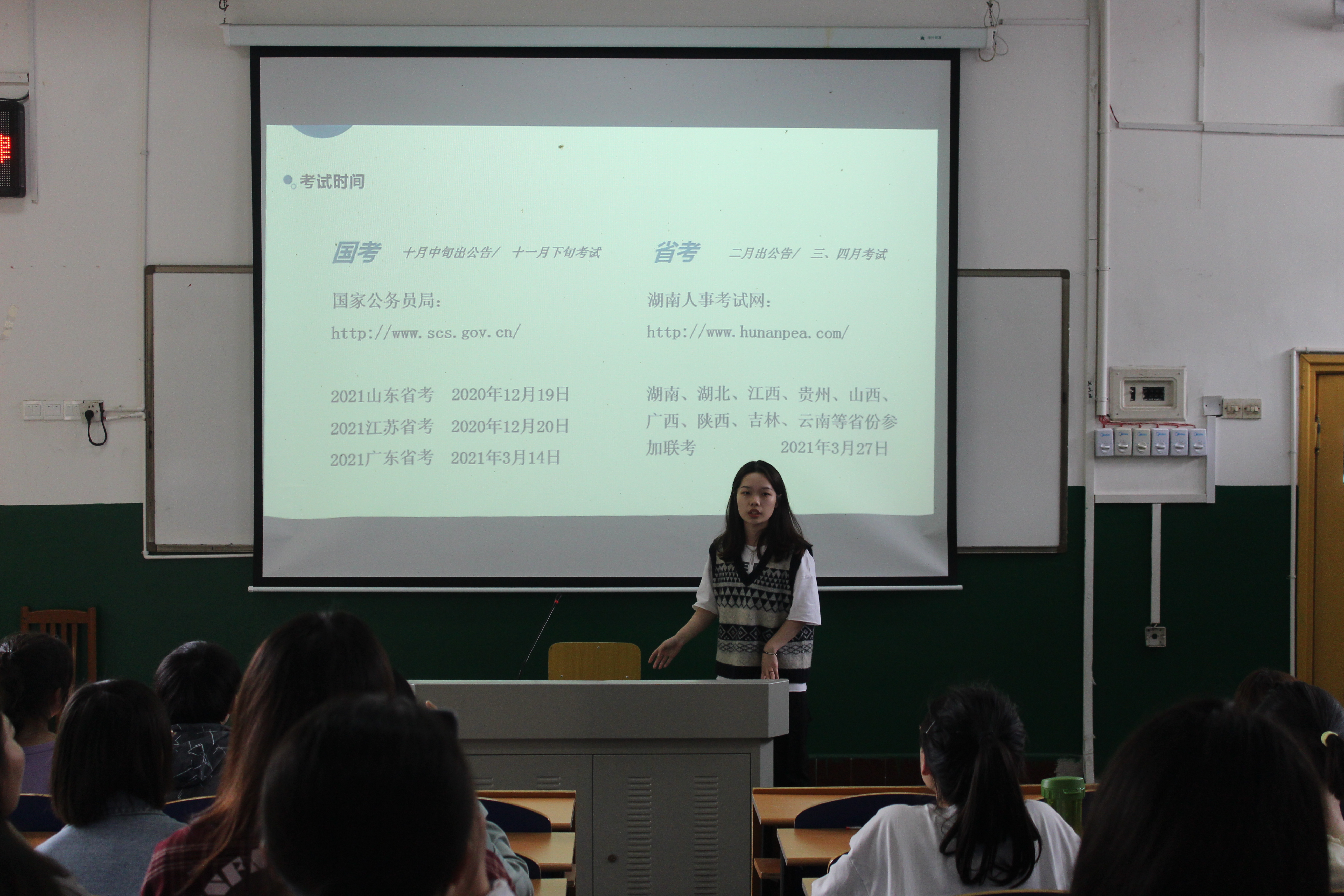 (图为优秀毕业生周唐慧进行考公经验交流)